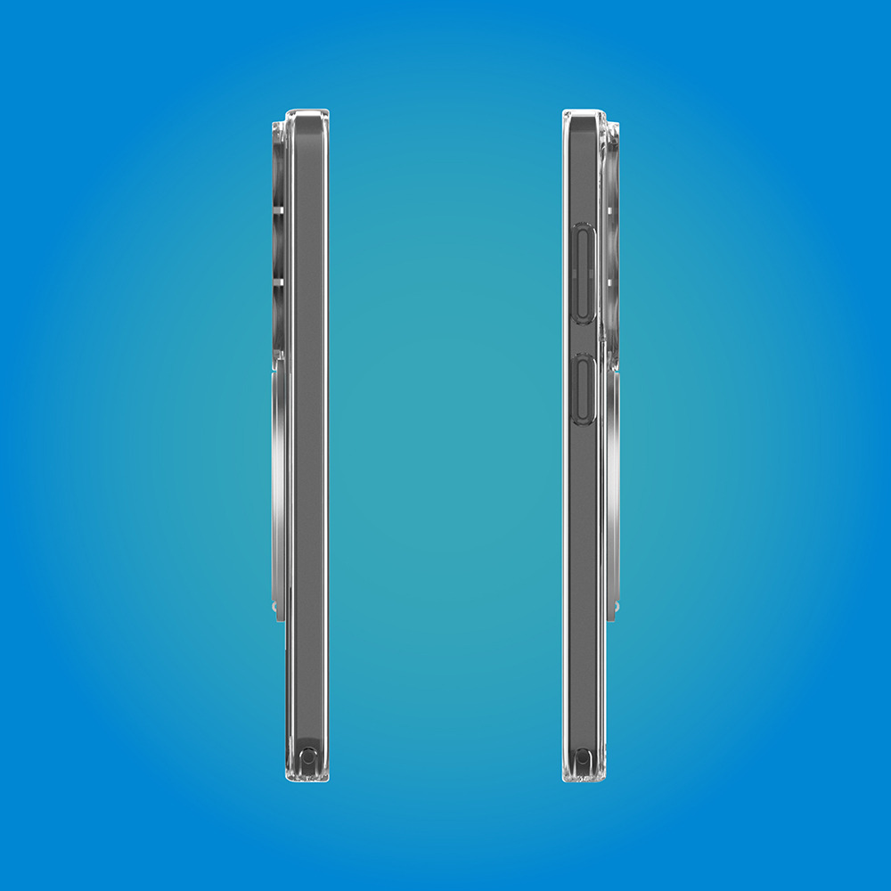 背面を超硬質素材で傷から守り、側面はやわらか素材で衝撃から守る、傷に強いハイブリッド構造のクリアケースです。