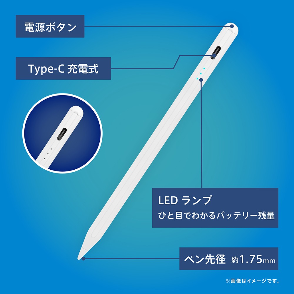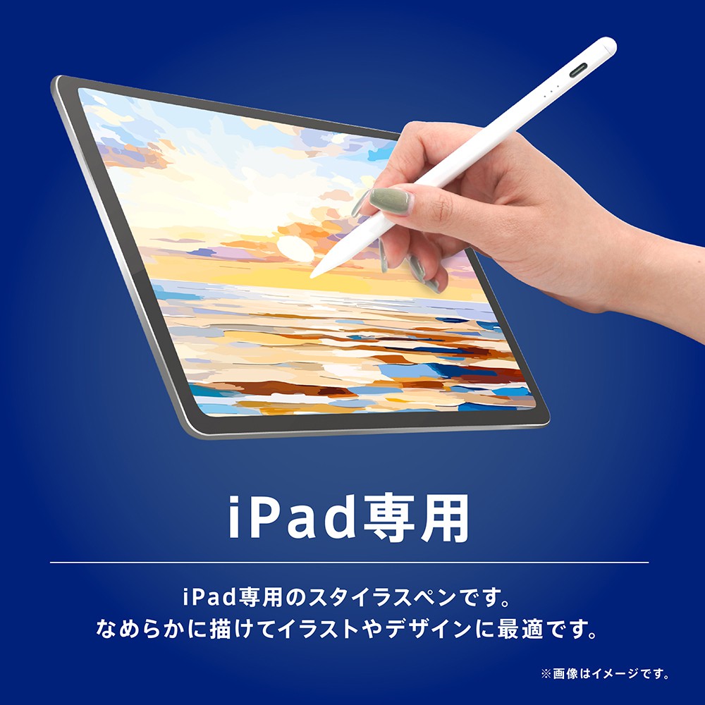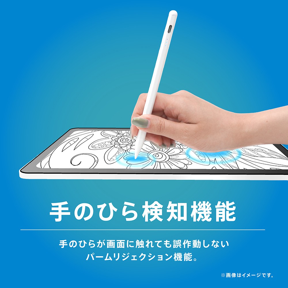 自然で滑らかに文字やイラストを書ける、iPad専用のスタイラスペンです。画面に手が触れても誤作動しないパームリジェクション機能を搭載し、手を浮かせる必要がありません。
