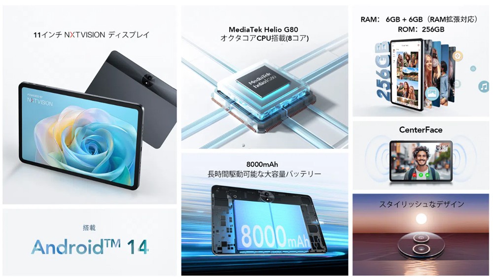 11インチの色鮮やかなディスプレイで、ビデオ通話やウェブ閲覧、日々のタスク処理や、楽しいプライベート時間を快適に。