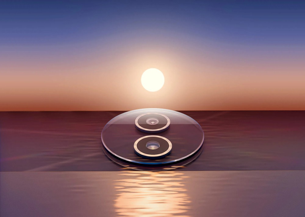 背面は光沢とマット感を融合させたメタリック仕上げ。水平線から昇る美しい太陽を、静かに表現しています。