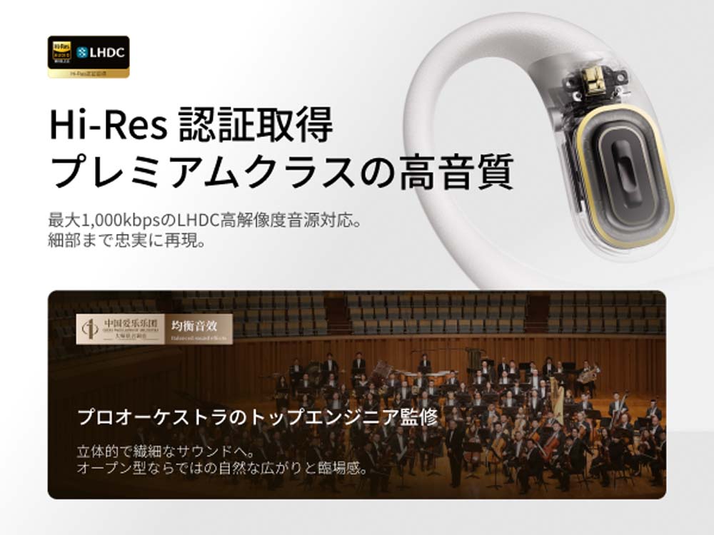 Hi-Res Audio Wireless認証を取得し、最大1,000kbpsのLHDC高解像度音源に対応。