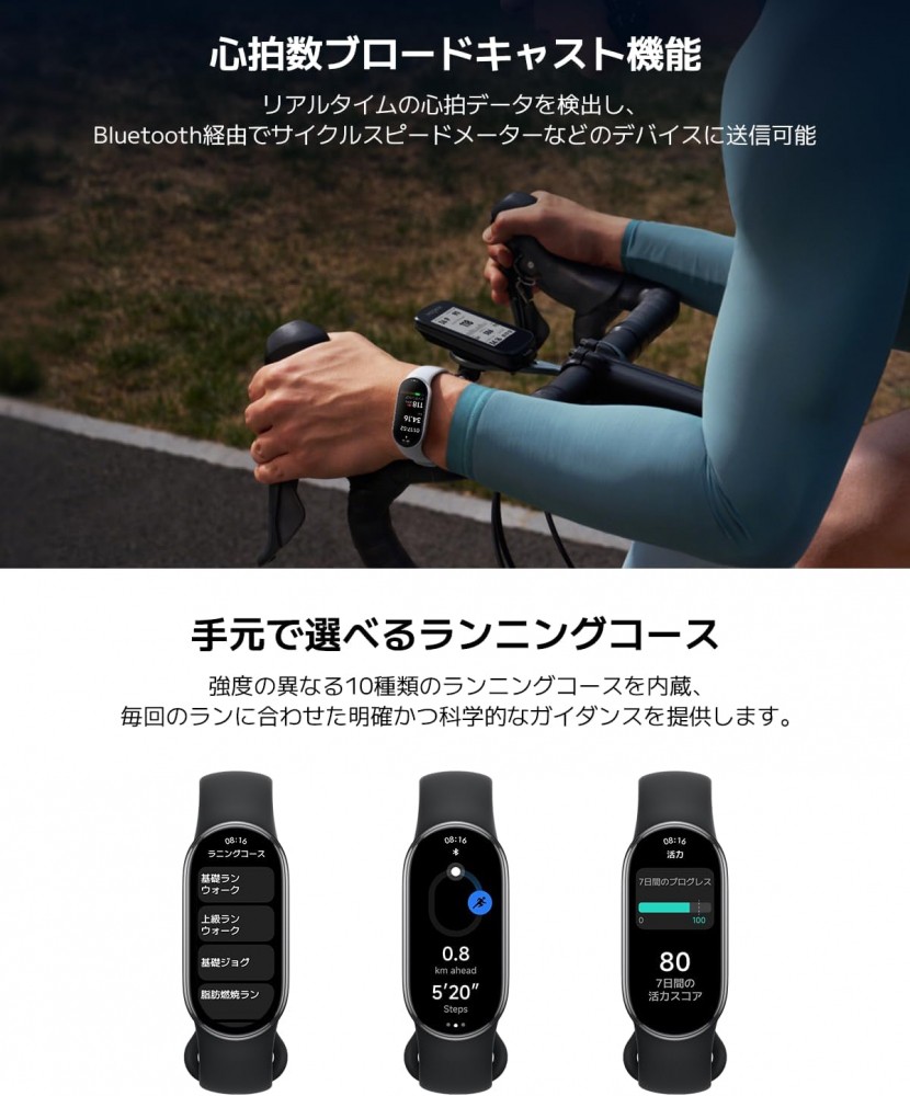 リアルタイムの心拍データを検出し、Bluetooth経由でサイクルスピードメーターなどのデバイスに送信可能。正確なトラッキングと科学的なトレーニングをサポートします。