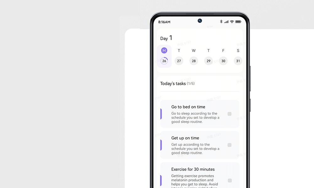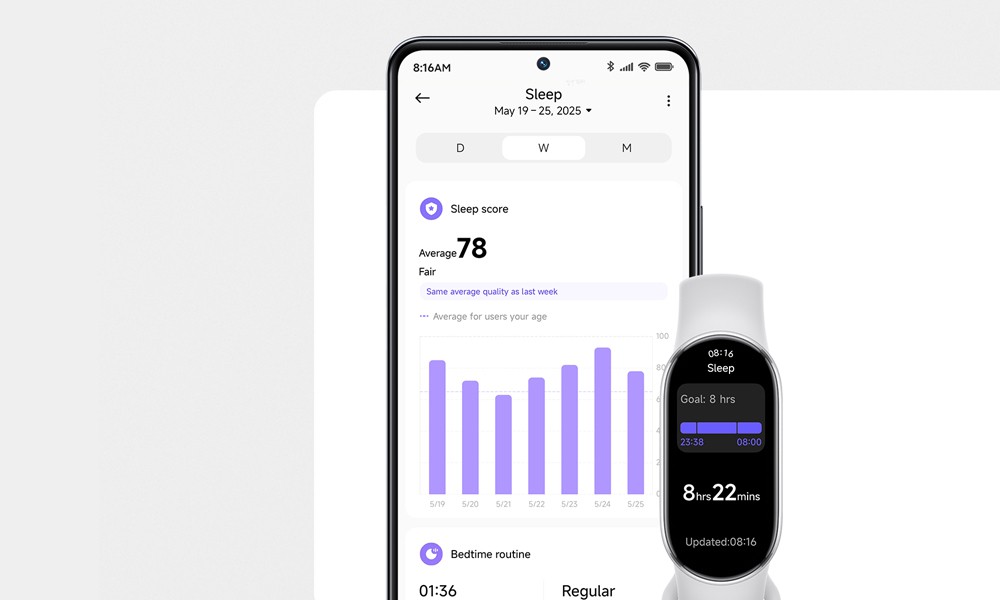 過去の睡眠データに基づき、スマートバンドが睡眠を最適化する21日間のプランを提案。健康的で安定した睡眠習慣の確立をサポートします。