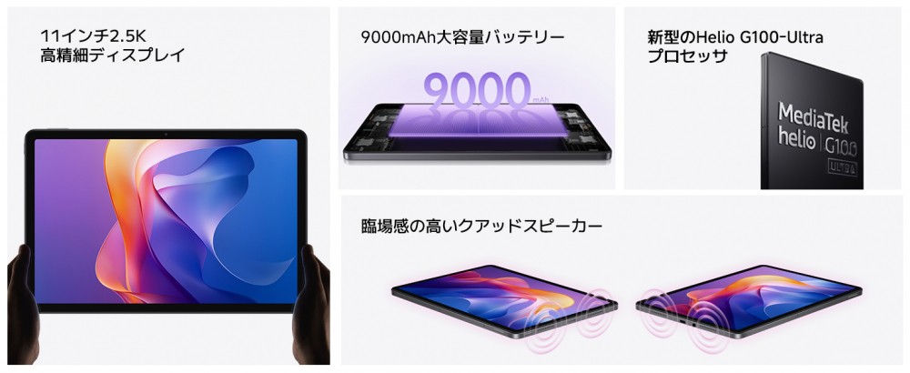 Redmi Pad 2は、圧倒的なスタミナを誇る9000mAh(標準)大容量バッテリーを搭載。読書、ゲーム、動画の一気見など、長時間の使用も余裕でこなします。
