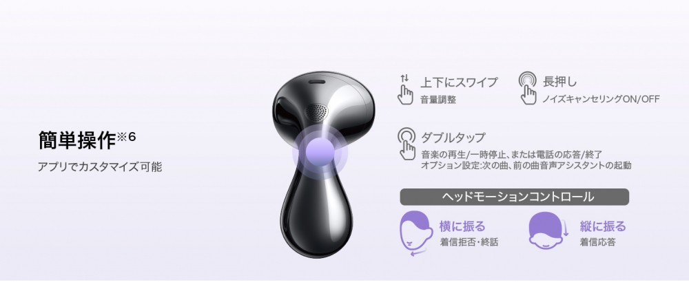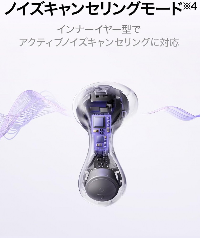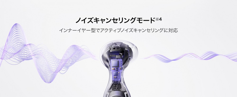 アクティブノイズキャンセリング(ANC)に対応。トリプルマイクにより高精度で周囲音や外耳道内の状態に合わせて最適な音量に調整したり、ノイズキャンセリングを行います。またノイズキャンセリングは騒がしい場所でも、静かな場所でも、シーンに合わせてシームレスで自動に最適なモードへ変更されます。