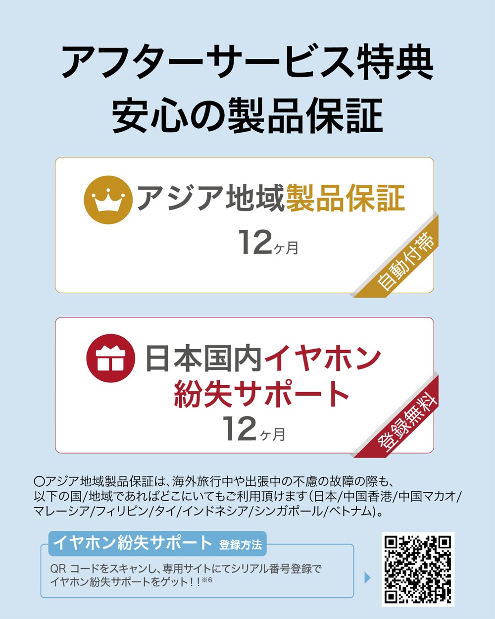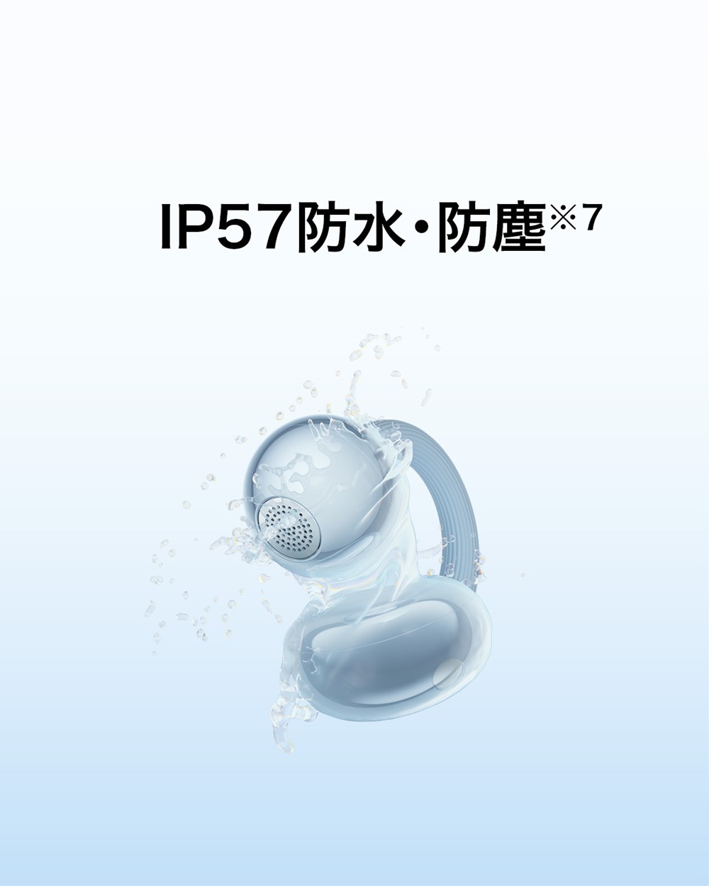3.IP57の防塵・防滴性能はイヤホン本体のみに適用され、充電ケースには適用されません。本製品は、通常の環境下での防滴・防塵・耐水性能を備えています。管理された実験室の条件下でテストされ、IEC規格60529の下でIP57の認証を取得しています。水泳や高水圧・急流下でのシャワーなどには適しません。防滴・防塵・耐水性能は永久的なものではなく、日常的な磨耗により性能が低下することがあります。湿気の多い場所での充電は避けてください。液体による損傷は保証の対象外です。運動後はすぐにイヤホンの水分を拭き取ってください。