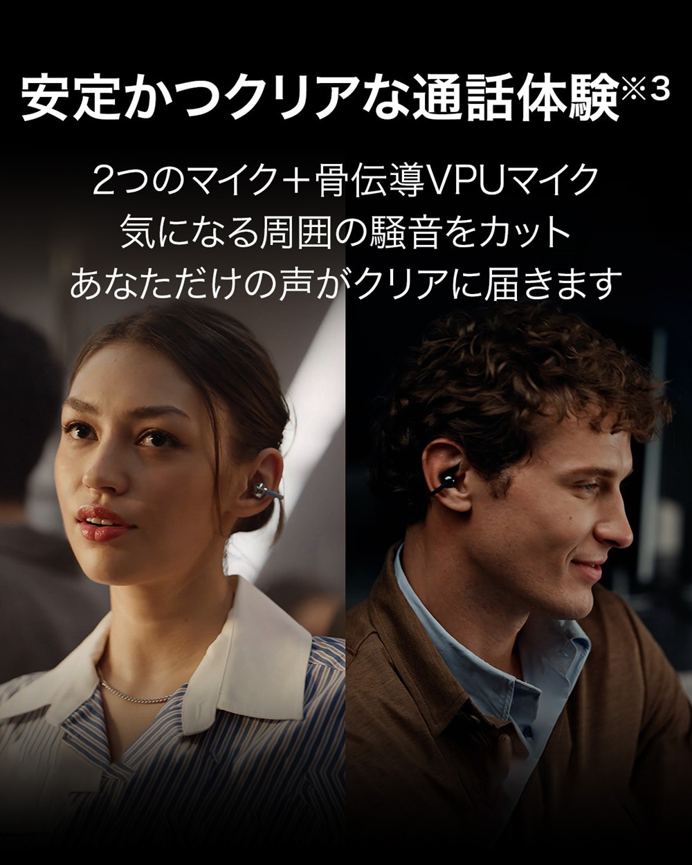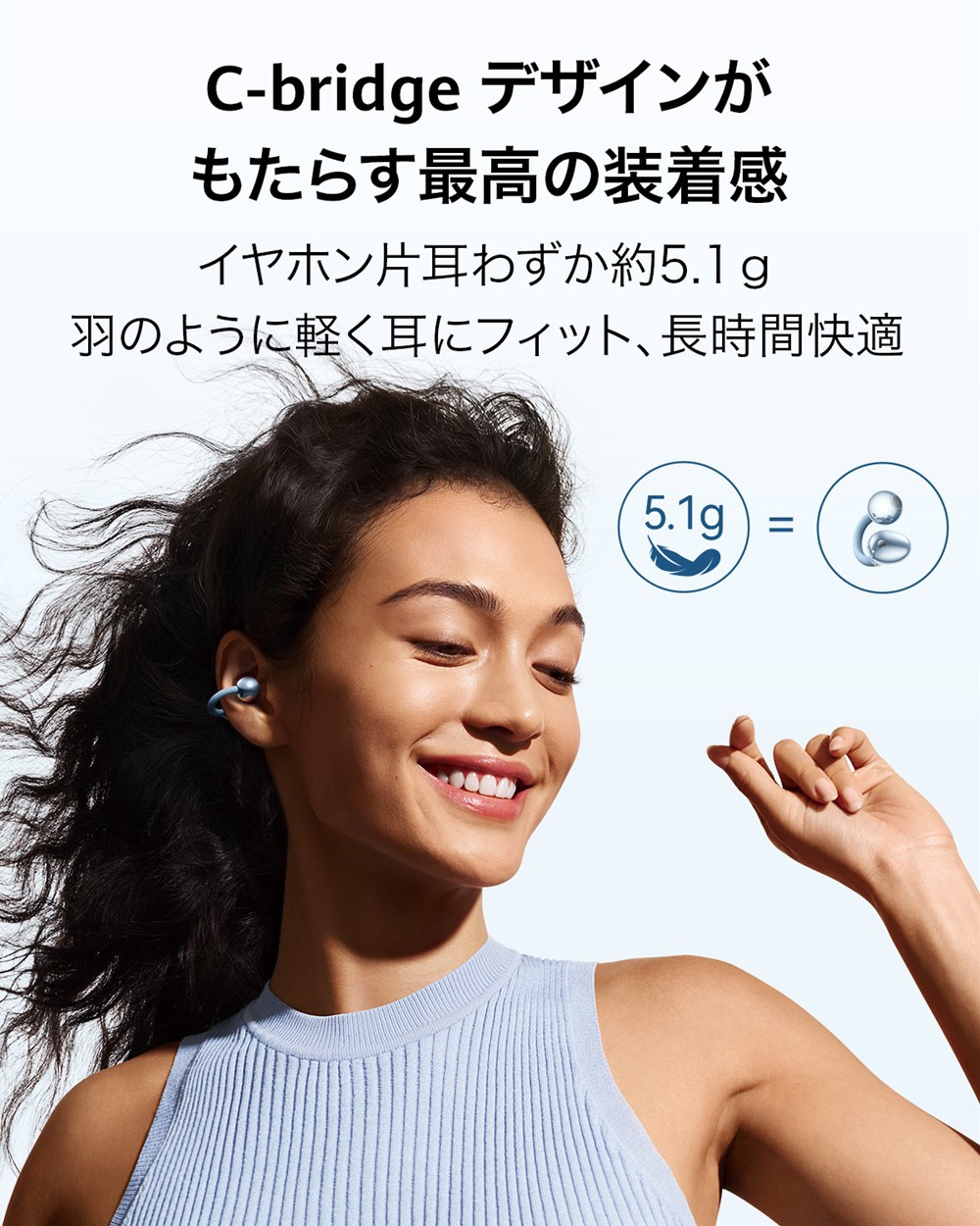 軽やかなC-bridgeデザイン | 締めつけず離さない装着感 | 日本初のデュアル振動板が生む高音質。