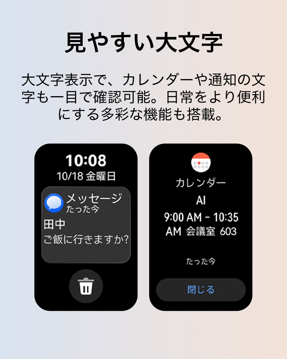 わずか約17gの軽さで、着けていることを忘れてしまうほどです。約8.99mmのCNC加工アルミニウム合金ケースが、日常だけでなく睡眠中や運動中などあらゆる常時着用するシーンで快適な着け心地を提供します。