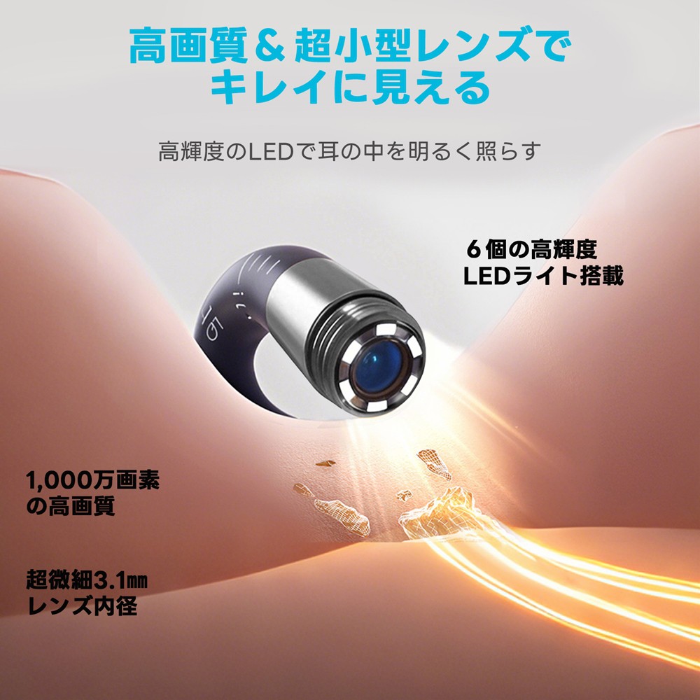 1000万画素のHD画質でより鮮明に耳の中を確認。