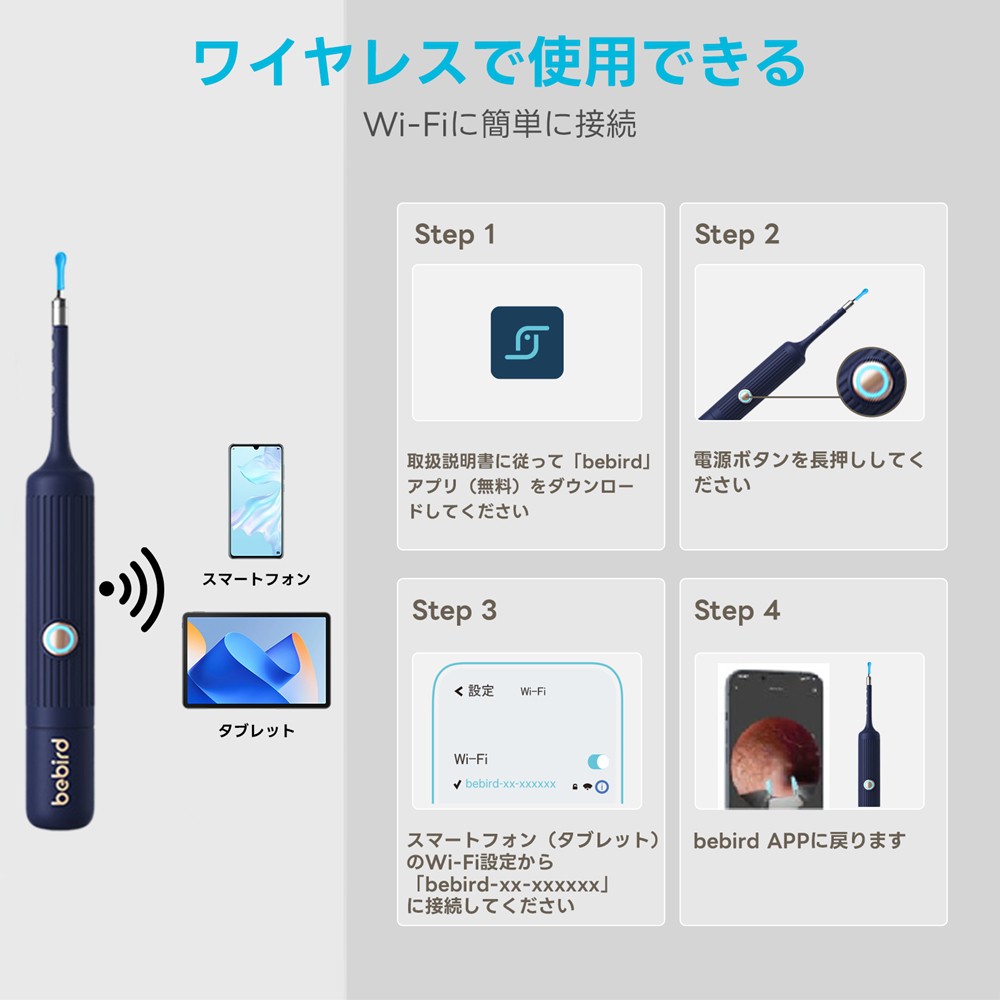 Bebird Note6 スマート耳かき iOS Android対応 カメラ付き 1000万画素 ネイビー IOT-BD-N6-NV