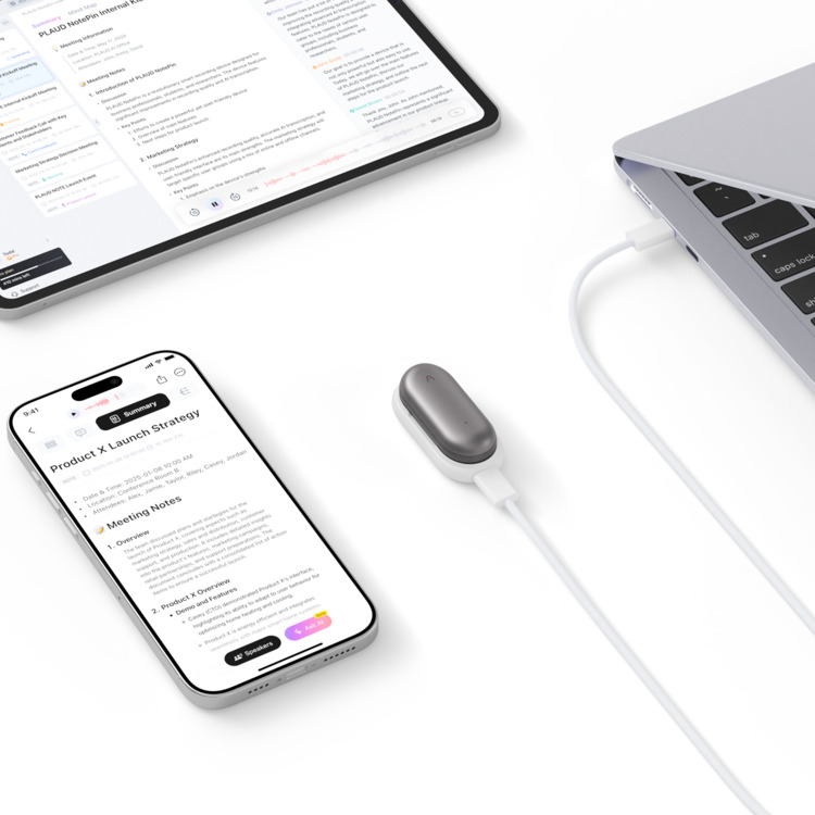 PLAUD NotePinは、常に待機状態のAIビジネスパートナーデバイスです。時間とともにあなたを学習し理解することで、仕事の会議の前後のルーティンタスクを実行し、あな たがより創造的で価値の高い仕事に集中する時間を増やすことができます。