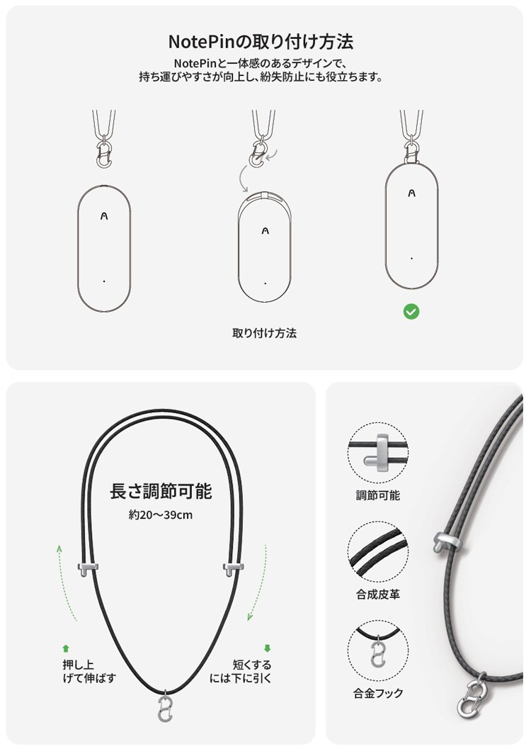 身に着けられる ワンタッチで録音 AIボイスレコーダー ネックストラップ