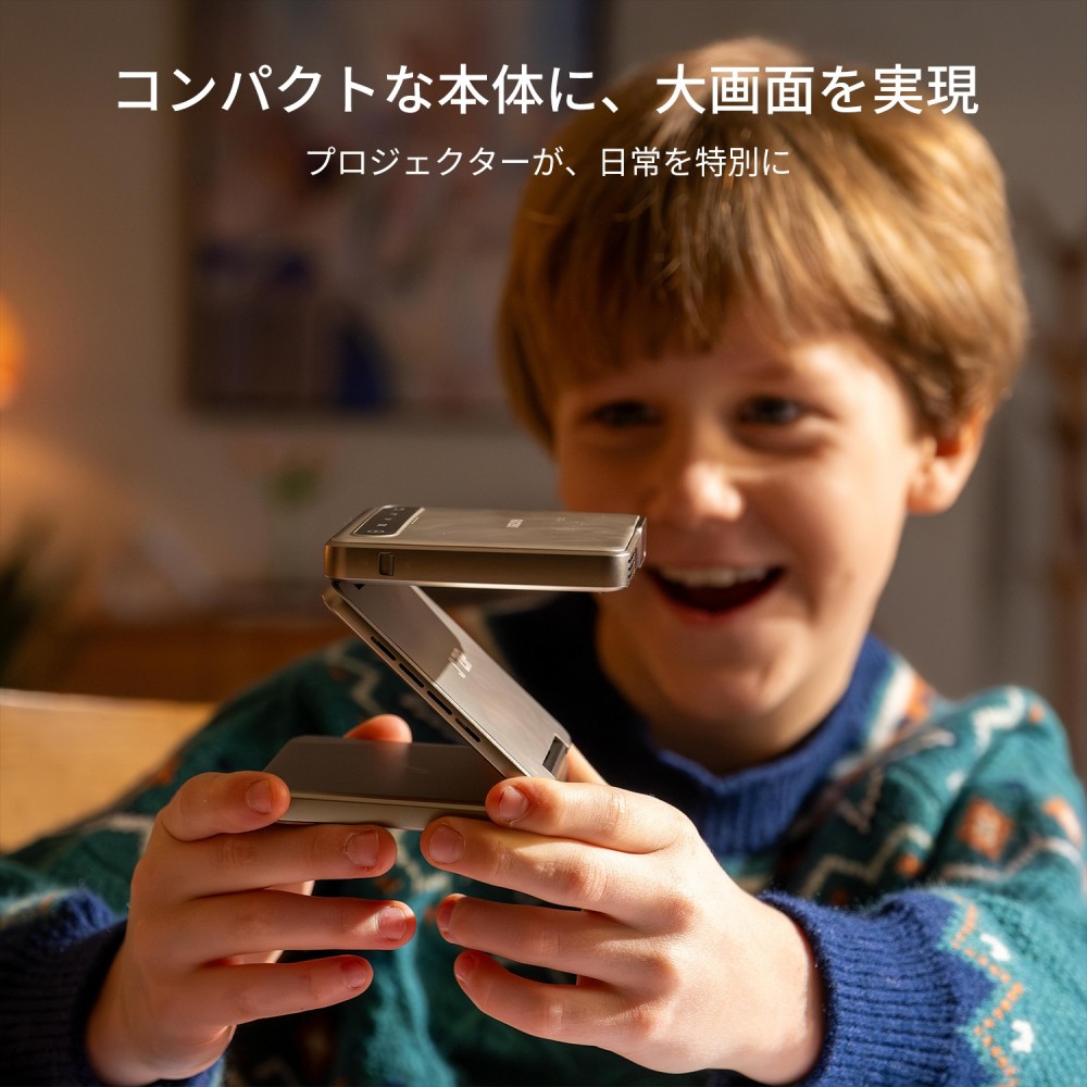超軽量・超コンパクト いつでも、どこでもエンタメを広げてすぐ再生可能でアクセサリー不要な手軽さでありながら、スマホと同じ軽さで半分のサイズのため持ち歩き自由自在。