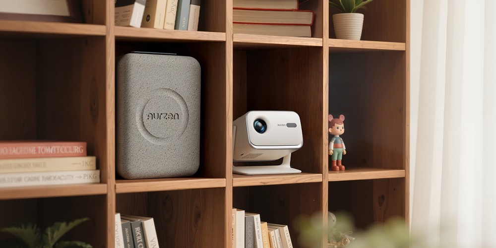 AURZEN Boommini ホームプロジェクター Google TV 1080p 500ANSIルーメン デュアル10Wスピーカー 専用ケース付き