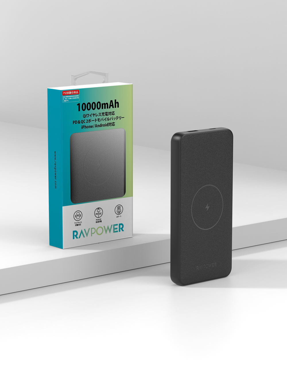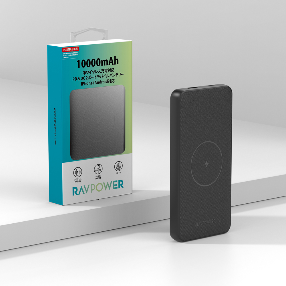 RAVPower 10000mAh Qiワイヤレス充電対応 PD&QC2ポートモバイルバッテリー